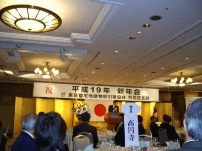 昨日弊社が所属している宅建杉並支部の新年会が新宿のセンチュリーハイヤット東京で開催されました。全宅連の藤田会長や地元選出の石原伸晃自民党副幹事長はじめ山田区長が来賓として出席され盛大でした。 途中、アトラクションとしてブラジルサンバがあり場内は騒然として皆さんその迫力にはあ然・・・・。最後は万歳三唱にて閉会。その後は阿佐ヶ谷へ戻り、当然(?)帰宅は・・・・今日は二日酔いバージョンで仕事しておりました。by吉田 阿佐ヶ谷で賃貸探すならヨシダホームズへ