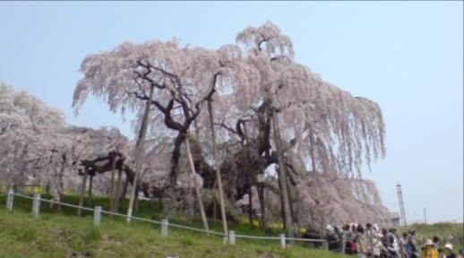 不鮮明ですが、上の写真は、友人のR美さんが今週見物に行った、日本三大桜のひとつ『三春滝桜』です。……じつはR美さんに教えてもらったのですが……当日、携帯カメラで撮影したものを、メールに添付して送ってくれたのです。朝4時に起きて息子さんと二人で出掛けたとか……先日、欲しかった一眼レフのカメラを買ったと言っていたので、カメラ試しに行ったのでしょう。その内、一眼レフで撮った滝桜を見せてくれるのではと思います。4月22日の三春滝桜いろいろ春を愛する人は~心清き人~♪ すみれの花のような ぼくの友だち~♪