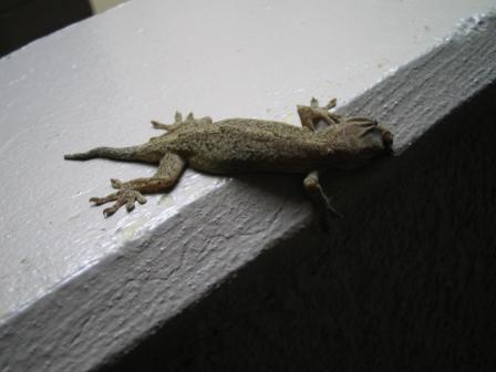 二匹のうち、大きい方のヤモ君が、あっけなく死んでしまいました。夜、部屋に入り、飼育箱を覗いている時でした。じっとしていたヤモ君……突然ひっくり返って痙攣を起こしたのです。そしてそのまま息を引き取りました。トカゲなどとは違い、ほとんど動かないので様子がわかりにくかったのですが、餌も食べてなかったようなので、きっと衰弱していたのでしょう。プラケースを上ろうとしてたびたび落ちていましたし……残った子ヤモリ君は、蜘蛛や蛾など、餌をよく食べているようですから、このまま大きくなってもらいたいものです。餌さがし苦労してます。蛾とか蜘蛛、意外にいないもんですね。