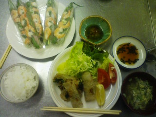 また???って思ったけど(笑)先生、おばあチャンだから前回も生春巻きだったの忘れたのかしら生春巻き揚げ春巻き春菊のスープコレは美味しかったでもねぇ~うちの班は若い女の子ばっかりでガールズトークが炸裂してて料理が進まないのよ(笑)先生がうちの班に来るたびに、『ココは進んでないねぇ。。。』って言われちゃうのでも楽しい