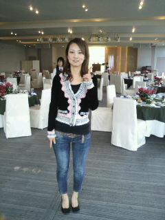 会場は門司港hotel♪5時に仕事が終わる私達は~超ヒマ(´Д`)テーブルも何にも用意されてないや…暇すぎて~後輩と写真撮影(笑)