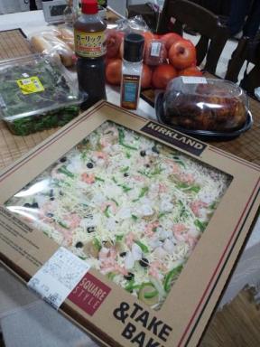 コストコ行って来た友達と行って~大量購入(笑)夜ご飯は~ピザと丸焼きのチキンみんなでワイワイ食べました4人でこの量は。。。シーフードピザは、美味しいですよ~このデカさで1400円は激安