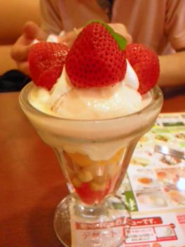 確か...ダイエット中だったはずの私ですが(´=Д=`;A) ガストでサンデー食べてます☆ツレは~パフェやね(笑)