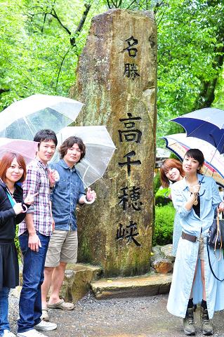 買い食いや~寄り道で(笑)やっと高千穂に向かいました4月末に行ったけど、また来るとは思ってなかったです前回はGWで人も多くて、写真を撮るのも大変だったけど。。。今回はガラ~ン。。。。。。だって、大雨洪水警報が出てたし、新幹線も止まってたもんね(笑)でも、雨のお陰で緑がすごく綺麗でした雨も小降りになって~ホントに私達は、ツイてるなけど、高千穂峡は増水で濁流ですカフェオレみたい♪前回と比べると。。。滝が。。。かなり短いね(汗)ボート乗り場は、屋根まで沈んでました。。。 次は。。。高千穂神社みんな真剣にお参り。。。ちなみに。。。私の願いは。。。パワーを返しに来ましたので。。。って感じ(^^;人がいないからって。。。こんな事やってました。。。楽しそうでしょっ そして。。。天岩戸神社へホントに。。。今のモメモメがなくなることだけを願って真剣な私。。。(笑)そして、メインの天安河原への道は川沿いを歩いていくので~無理かな。。。って思ったけど~何とか途中まで行けたとりあえず、パワーは少し頂き、半分はお返し。。。ってか~そんなこと出来るのか?(笑)結局、増水で遊歩道?は川が氾濫してて『天安河原』行けず。。。前回、石を積んだ所は全部、流されちゃってるんだねぇ~ ほら、後ろのせせらぎみたいなのが~増水するとあんなになっちゃうんだねぇ。。。でも、石は6人で積んできましたよ何か可愛い☆私が”あそこは石がないから持って行った方がイイよ”って教えていたので~イイのか?悪いのか?高千穂神社の石を拾って行きました知らない人は、一生懸命、石を探してたけど。。。知らないの?もうナイってば。。。そして。。。みんなで~おみくじ引いて、”せーの”で開けたら。。。ガーン。。。。。。。。 私。。。。。。大吉を。。。。。。引いてもうたぁ。。。せっかくパワーを返しに来たのに、また大吉なんて引いちゃってどうしよう。。。でも、さすが大吉!内容的には良かったよ”天のお助けを受け諸々の災い去りて~~途中省略~~信神(神を信じる気持ち)怠りなければ益々思うままになります”ってさ災い去りて。。。って マジ去ってくれるかなぁ~(笑)待人も”きます”なので。。。来るのかなMA-CHI-BI-TO カモ~ンつづく。。。