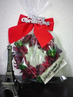 ☆★ 12/12 No.1 ★☆今日は、後輩あみチャンの誕生日一回りも下ですけど~かなり仲良しです同じ辰年~来年は二人とも年女wwwwwwみたいな(^^;それより。。。Happy Birthday!!あみちゃん そして、誕プレに~小さなポプリリースを作りました クリスマスのラッピングです☆カラーは~レッドにグリーンでクリスマス色で大きさは。。。 キュートなサイズです♪週末に遊びに来た友達にも作ったので。。。スモールサイズが3個で可愛い ホント小さいでしょ(^^)b26cmの大きいサイズと並べると。。。。 可愛い~☆友達に作ったリースも~欲しい色が違ったのでケンカもなく(笑)選んでもらえた~私は、これが一番、気に入った レッドとブルーです!これは、友達がお持ち帰り~何と車に付けたそうwwwwww車の中がイイ香りで良いとの事とりあえず、気に入ってもらえて良かった