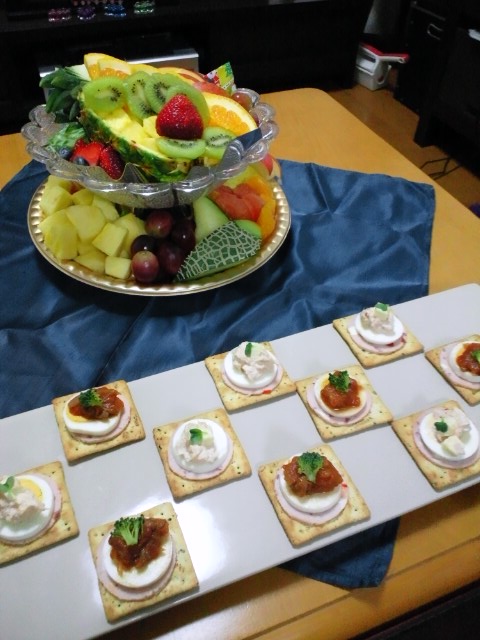 ☆★ 12/27 No.1 ★☆12/25のクリスマスは~私んちでPartyでしたしかし。。。。。私、風邪ひいて味が全くしない事に。。。料理の味見の時に気付いてさどうしよ~って感じでしたよぉ。。。けど、まぁ、かすかに感じる~塩味と甘味で頑張って作ったよんフルーツはねぇ~子供さんがケーキをあまり食べないらしいので。。。フルーツの盛り合わせにしましたがっ君、めっちゃ喜んでたから~ホント良かった315円で買ったこヤツが大活躍っ これ台と皿が外れるので。。。盛り合わせの真ん中を穴開けて~イイ感じに2段になってますwwwwwwww全体的には~こんな感じメインは~チーズフォンデュです ニトリで買った999円が大活躍☆友達んちの近くで買ったパンが~めちゃ美味しかったラザニアも~絶賛されて良かったぁ奥が豚バラのビール煮これはテッパンマズイと言われた事がない最近、コレばっかりwwwwwww賞味期限ギリのビールが沢山ありまして(^^;豚バラのブロックってば~安いし節約メイン料理(笑手前は~急に和風だけど大根サラダあぁ~ノリ乗せるの忘れてる。。。ワインは、デキャンタにいれて。。。。って~のは嘘です(笑)子供さんがいるので、お酒飲まずに、100%グレープジュースを~気分はワイン飲んでます風~にしてみた ワイワイ盛り上がり楽しかったです 寂しいクリスマス3連休のハズが~色んな人に助けられて~楽しい3連チャンX’masを過ごせましたぁ~ 彼氏いなくても楽しいねwwwwwwwwwwwwwwwwいかん、いかん、彼氏がいないと~仕事もプライベートもヤル気が出ないわ(^^;来年こそイイ人に巡り合えますように あぁ~赤のテーブルクロスを買えば良かった。。。それだけ心残りだわ。。。