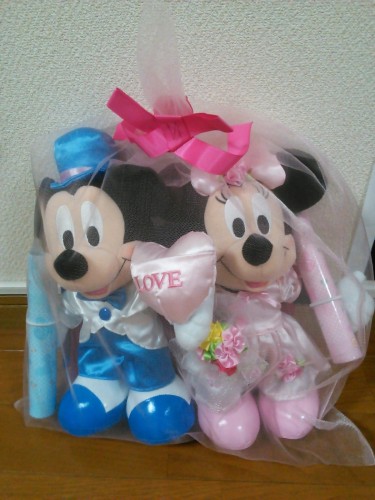 ☆★ 10/25 No.1 ★☆お客さんが~ミッキーとミニーの電報をくれましたwwって。。。これウエディング用よねだけん、結婚しないって(笑どうやら。。。ぬいぐるみを私にあげたかったらしい。。。けど、紛らわしい。。。(^^;でも、可愛いけど、別にミッキー好きではないので。。。どうしましょ(笑