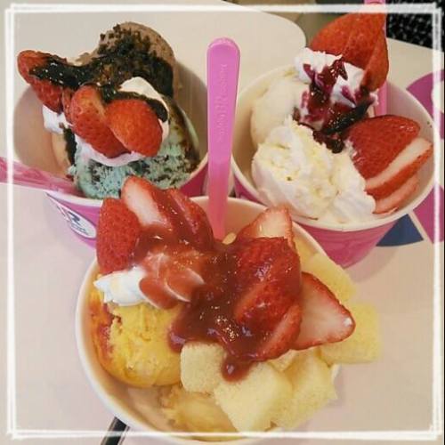 --- 4/23 No,3 ---なんと!門司にオープンした31早速、期間限定のフレッシュストロベリーサンデー食べましたww私は、リッチストロベリーで苺3個分後輩あみチャンは、フロマージュ後輩イズミンは、ショコラめっちゃ美味しかった~けど。。。この後ランチちょっと順番、間違えちゃったよぉ~(笑