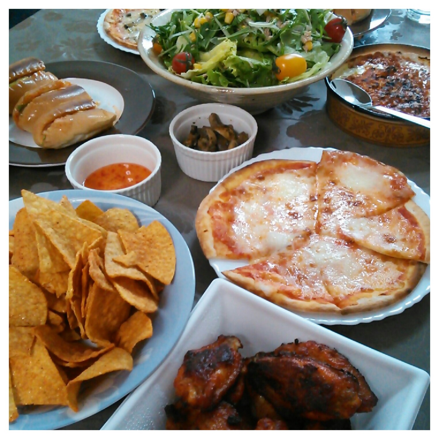 --- 4/22 No,4 ---先日、お友達の誕生会にサイゼリアでテイクアウトしてきましたよ~ピザ2枚、ドリア、チキン2皿をお持ち帰りで1600円ぐらいって安いね!!ピザ、美味しいしwwドリアも安いくせにイケるね(^^)vホットドックは作って持って行って~サラダは、お友達が作って~チップスも買って持って行った(笑一通り食べた後、メンズ達は、足りなかったのかマックに大量買いに行ってしまった(笑ケーキは、私の地元でチョイス(^^)bエスペランスさんの竹下 4丁目のチーズケーキ(商品名ですww)あけると~フワッフワのチーズケーキが出てきますwwロウソクを立てて、ハッピーバ~スディ~トゥ~ユ~♪をみんなで熱唱(笑何歳になっても誕生日のお祝いは、する方もされる方も楽しいよね
