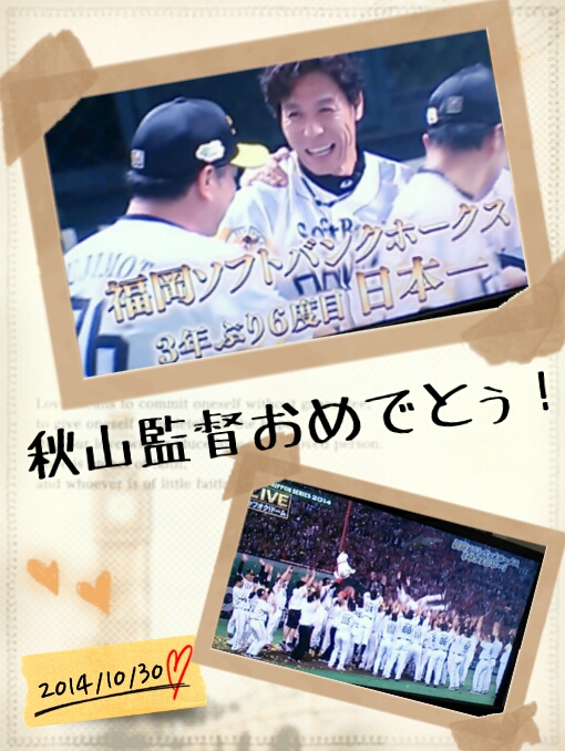 (∩´∀`)∩ワーイソフトバンク日本一!!(∩´∀`)∩ワーイ秋山監督おめでとう!!でも、辞めないでぇ~・゜・(ノД`)・゜・けど、、、明日から福岡はセール三昧だわぁwww
