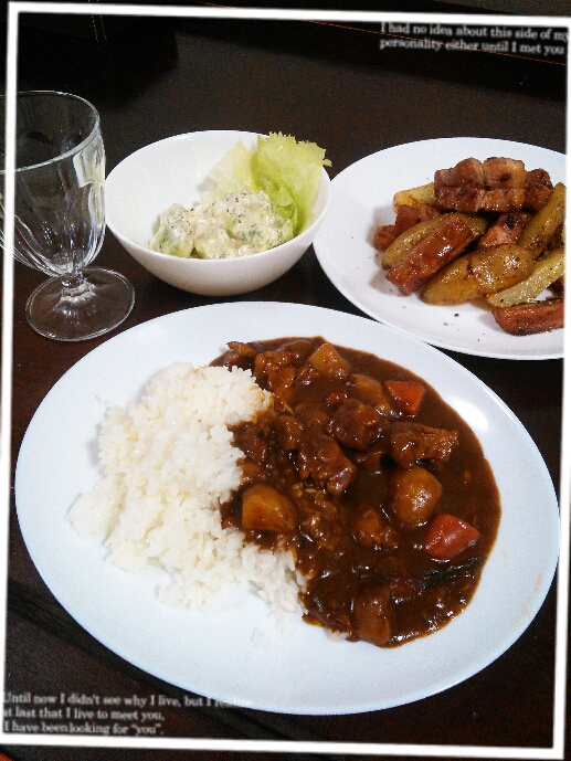 少し前の晩ご飯ですが~ 引っ越し前で冷蔵庫の中身片付けのため(*^^)v 鶏肉でハヤシライス♪ ジャーマンポテトとアボカドサラダ(*´▽`*) ハヤシライスって、チキンで作ったら意外と美味しくてビックリ! お試しあれヾ(≧∇≦) さて、明日は朝8時から引っ越し!頑張らねばwww