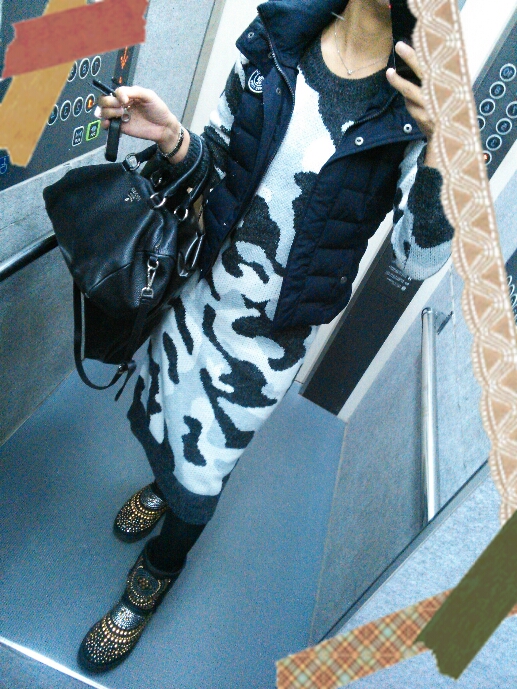 迷彩のセットアップが見えませんコーデ(笑)アウターを荷造りしちゃって寒いよ~明日引越し頑張ります(*^^)vあ~リブのペンシルスカート可愛いwあと少しで販売終了\(◎o◎)/!13:59まで1080円この長さイイね~あったかそう(●^o^●)