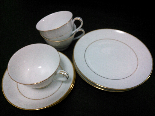 --- 11/25 No,1 ---荷ほどき、、、リビングは片付いてきたけど、なかなか片付かない(^_^;)荷ほどきって、大変だわぁ~****************************さて、一昨日のノリタケのアウトレットセールで購入したものをご紹介しますw今回は、普段使い用のカップ&ソーサーが欲しかったのでお安いのをget(*^^)vノリタケ ゴールドラインシリーズカップ&ソーサー×3客18cm皿×3枚を購入しました~(^_-)-☆tea飲みながら、、、ケーキを食べるなんて妄想中(*^_^*)シンプルなゴールドが使いやすそうでしょwアウトレットなので、とってもお安く購入できてニンマリ(*^^)vカップ------1客483円ソーサー---1枚345円18cm皿---1枚518円とアウトレットからさらに20%offで購入できましたw全部で4,038円\(◎o◎)/!しかも、カード使えるから◎しかし、なぜ3客???(?_?)???と思われそうですが。。。最初2客購入予定だったのですが、在庫が3客で、後1客を残してもこの子は、売れないだろうな。。。。と思ったら可哀そうになって購入(笑)割れた時のことも考えたら安いしいっかwwって感じです(^^♪このゴールドラインシリーズは、業務用?なので元々お安いのですが楽天でも、このぐらいはするのね~2700円18cm 1512円友達夫婦は、旦那さんも食器見るのが好きみたいで~仲良く、沢山買ってて良かった(^^♪そして、招待状のはがきを持っていくと粗品くれますw粗品!?えぇ~\(◎o◎)/!ノリタケ ザビアゴールドのシリーズは、現行で売ってる商品だし、結構、お値段もお高いのに!!!購入したのより粗品の方が高いと言う。。。(^_^;)楽天じゃ5400円!?10260円頂いたのは、カップだけなので。。。ソーサーのみを買おうかな♪ゴールドラインシリーズ色々~ 14cm 1296円19cm 2052円23cm 2376円あれ?大皿は楽天の方が安いかも~(^_-)-☆27cm 2916円