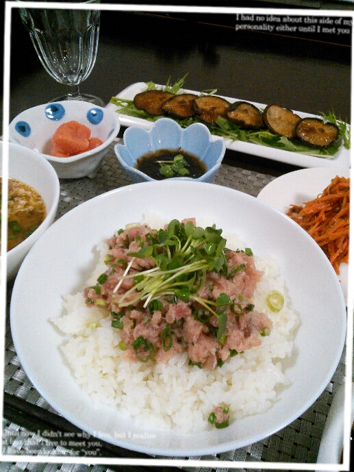 --- 11/11 No,1 ---引越すから。。。彼に食事を作ってあげるのも少なくなるだろうな~(T_T)先日の晩ご飯ww ネギトロ丼定食 wwネギトロ丼、味噌汁、人参の胡麻和え、辛子明太子、椎茸のバター醤油焼き、もずく。品数多く作れました(*^^)vネギトロは、まぐろ処 一条さんの天然鮪のネギトロ用タタキ(粗挽きタイプ)天然マグロの粗挽きネギトロ1,000円ポッキリ送料無料!天然マグロの粗挽きネギトロ200g2セット以上でオマケも付きますwこれ、解凍してネギと混ぜるだけで簡単にネギトロ丼が出来るので便利(*^^)v椎茸のバター醤油焼きは、干し椎茸使ってます(笑)大分で干し椎茸を買った時にお店の人が食べさせてくれて、それが美味しくて\(^o^)/美味しくて\(^o^)/干し椎茸って煮物とダシしか使わないから、大量のストックがあって。。。(^_^;)普通に戻してバター焼きでかなり美味しいよwお試しあれ♪