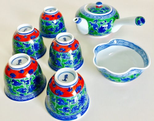 --- 11/25 No,1 ---先日、源右衛門のカップ&ソーサーを頂いたご夫婦さんからまた、頂き物しちゃいました(*´ω`*)源右衛門の茶器セットですお湯のみと急須と湯冷ましまで(^_-)-☆色も源右衛門らしくて素敵ですね~あー見とれる―((((oノ´3`)ノ笑顔で(人''▽`)ありがとう☆ございます!!って言ったけどこれめっちゃ高額やないですかっ(@ ̄□ ̄@;)!!86,400円源右衛門窯 緑彩唐草小茶器9万弱(;´▽`A``奥様から食器好きな人と出会えてうれしくて♪♪って言ってくれてそんな気持ちを一緒に頂いて大切に、大切に、使わせて頂きます(*´ω`*)