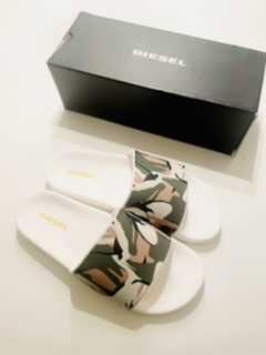 --- 3/10 No,2 ---インポートショップeウエアハウス さんDIESELのB級やアウトレットや型落ちがめっちゃ安いshopさん!!送料払ってもお安いけど、、、3,980円以上で送料無料です(^^)vって!届くの早っ!!ロゴのにじみ???分かんない(笑)サイドにDIESELのロゴ!1786円には見えない!(笑)ってことで~9店舗目~彼の外履き用に1,786円ディーゼル(DIESEL)メンズ 訳あり サンダル ベージュ系 Multicolor Desert SA-MARAL MEN シャワーサンダル イタリア製 (サイズ/40/42/44)*am2002やっす( *´艸`)訳あり部分は、、、サイズ:44 B品状態:ソールうす汚れ、インソールロゴにじみ、全体に若干スレキズって、、、どこ?(笑)分かんないし、、、外履きなので別に問題ないね◎