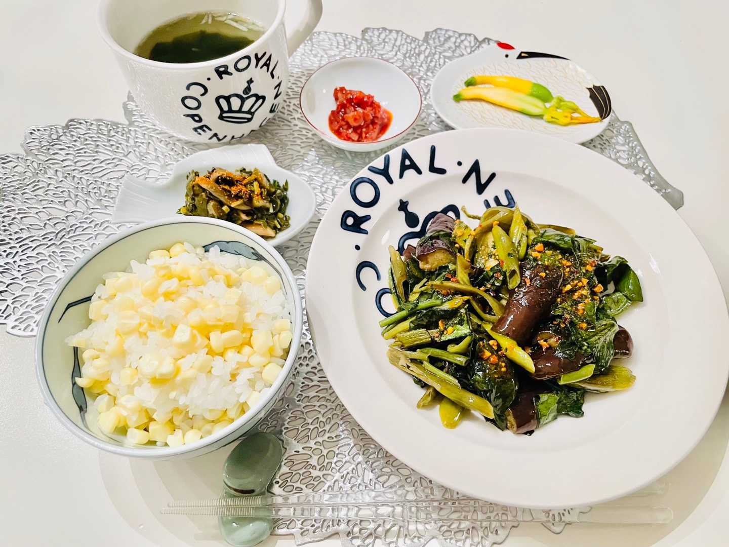 茄子と空心菜のガーリック炒め定食w