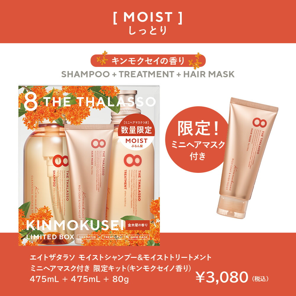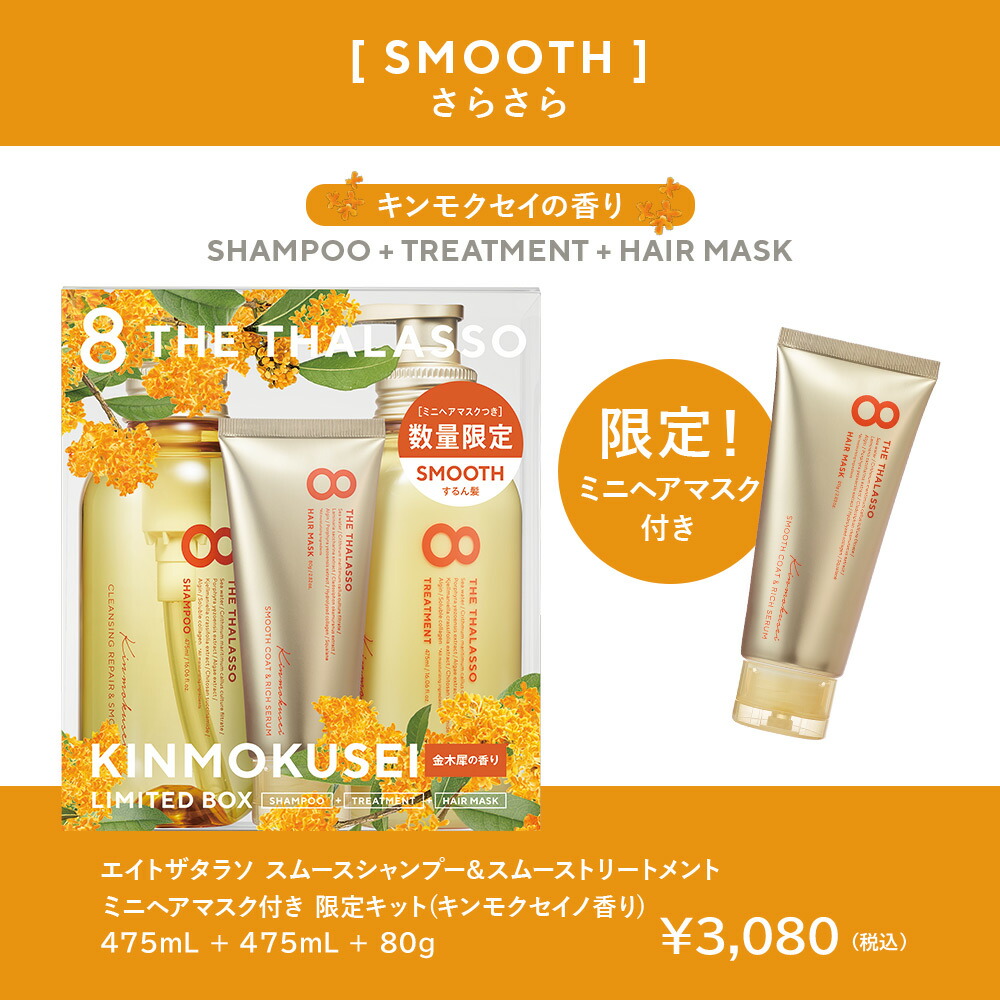 【ポイント20倍!〜10/31 23:59】8 THE THALASSO エイト ザ タラソ シャンプー&トリートメント ミニヘアマスク付き限定キット キンモクセイの香り セット モイスト スムース 金木犀 美容液 コンディショナー スカルプ 地肌ケア しっとり さらさら【限定キット】