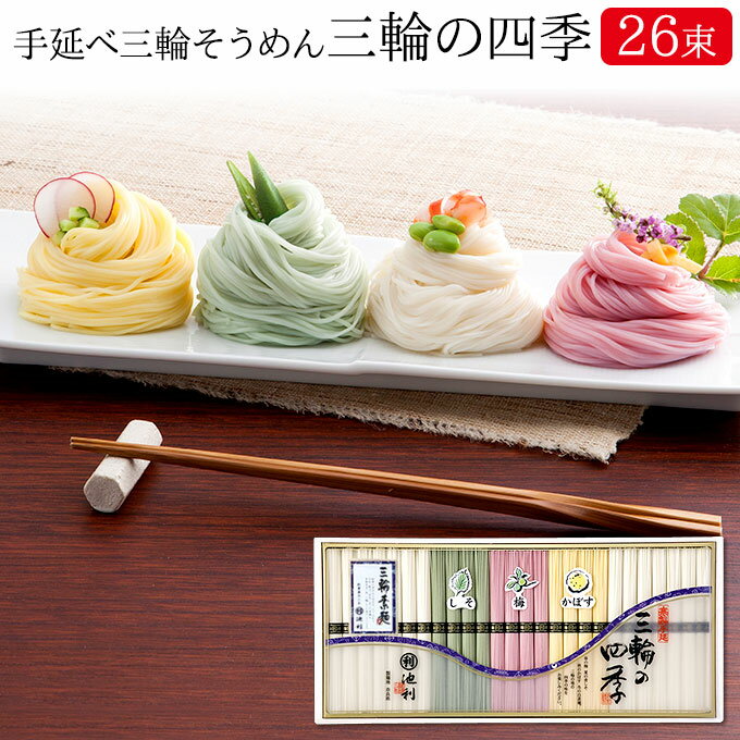 お中元 ギフト プレゼント 三輪そうめん三輪の四季(梅・しそ・かぼす)50g×26束(1,300g)約17人前 【送料無料※北海道・沖縄・離島別途1,000円】【内祝い お祝い ギフト 贈り物 プレゼント そうめん 素麺】父の日 お中元 御中元