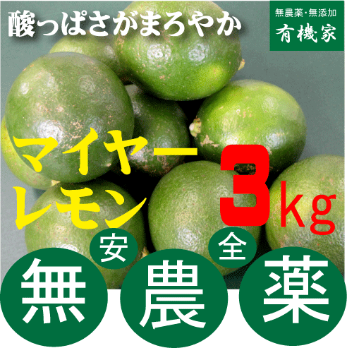 国産無農薬青マイヤーレモン3kg★有機JAS(無農薬・無添加)★沖縄県宮古島産★3kgは約30個です。★ノーワックス★オーガニックレモン