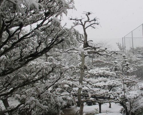 1月23日 月曜日 曇後雪 最高気温 5度 最低気温 1度 天気予報では曇後雪になって居て少しは降るのは覚悟して居ました 午後に成っても降り続き、外にはウッカリ出られないです 屋根から、滑り落ちてくる雪の固まりも音を立てて落ちて来ます 15時過ぎても止みそうに無く降り続いています。 朝から降り出した雪も、午後に成っても降り続き 寒い一日に成っています! 裏庭の松の木に積もった雪家の中から、窓越しに撮影です!表の庭の積雪朝から3時間ほどで、積もった雪景色です!東側の庭木、梅の木の枝にも積もって来て居ます!同じ梅の木にっつもったゆきです、少し拡大で撮影してみました!降って居る蕗の状態を撮影してみました!裏庭のスイリュウの枝にも沢山せきせつです!