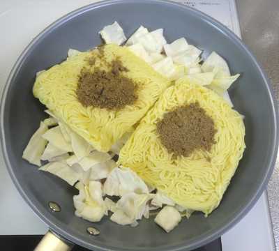 蒸気で麺が解れ火が通たら混ぜて出来上がり