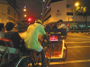 信号が赤から青に変わった途端、疾走する「輪タク」集団(笑)