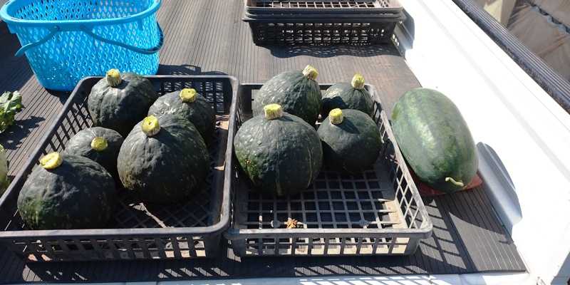 300坪の畑の抑制栽培のかぼちゃ・スイカとブロッコリーとみさきキャベツと赤ネギを収穫した。■かぼちゃのジェジェJと右側は黒龍西瓜 スイカはまだ3個あるが、今日より寒い3度予想の日が出てきたので、その前に全部収穫する。■みさきキャベツとブロッコリーの夢ひびきとスティックセニョール。■初めてこちらに作付けした赤ネギを収穫した。■ニンニクも9割位発芽してきたが・・。■M球の購入した種で出足は良かったが、残りは発芽しないで終わりか?■超極早生玉ねぎの甘早果で、2M弱苗が足りなくて畝が余ってしまった。■中晩成の玉ねぎを定植予定。11月に入ったら、もみ殻燻炭と肥料を入れる。■屋敷内の畑から、大根の紅三太とカブ、ピーマンとほぼ最後のナスを収穫。10月28~29日に従兄と二人で甲子温泉に行ってきた。戦場ヶ原から日塩紅葉ライン、那須、甲子温泉で、2日目は磐梯吾妻スカイライン経由で帰ろうと思ったが、雪が凍って立ち入り禁止で引き返してきた。1週間早かった感じで、吾妻スカイラインに期待したが残念でした。今回の道中で、”熊注意”の看板が多いのにはビックリしたのと、栃木県で特にクヌギ・ナラ・椎の木の立枯れが酷かった。あれでは熊も含めて動物の餌が足りないね。■磐梯山の初冠雪を見てきたが、福島でも1週間早かった感じ。でも1週間後だと葉が落ちてしまうか?ブログランキングに参加してます!1ポチッを是非お願いします!にほんブログ村家庭菜園ランキング