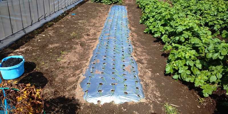 にんにくのホワイト六片・大島赤丸ニンニクと超極早生玉ねぎの畝にマルチ張りをした。にんにくは9415の黒マルチ、玉ねぎは9515銀黒マルチの銀の面を使う。それにしてもニンニクの貯蔵に失敗したようで、ホワイト六片で8M2畝の種の確保が難しいか?明日ニンニクを全部バラして、種が足りない場合の対応を決めるつもりだ。■8mで2畝に9415黒マルチを張った。もう1畝は種をバラしてから考える。■超極早生玉ねぎ用の8mの畝 9515の銀黒マルチのシルバー面で張った。苗作りで失敗していて、約270本の苗が必要だが、果たして間に合うか?■秋ジャガ(ながさき黄金)にEM活性水と納豆水の希釈液をじょうろで灌水した。■グラウンドペチカ■じょれんで土寄せをした。■まだ7割弱の発芽のグラウンドペチカも早すぎる土寄せをした。■300坪の畑の全景(R7/10/12)■四季穫キャベツの種蒔きをした・・・定植はいつ?ブログランキングに参加してます!1ポチッを是非お願いします!にほんブログ村家庭菜園ランキング