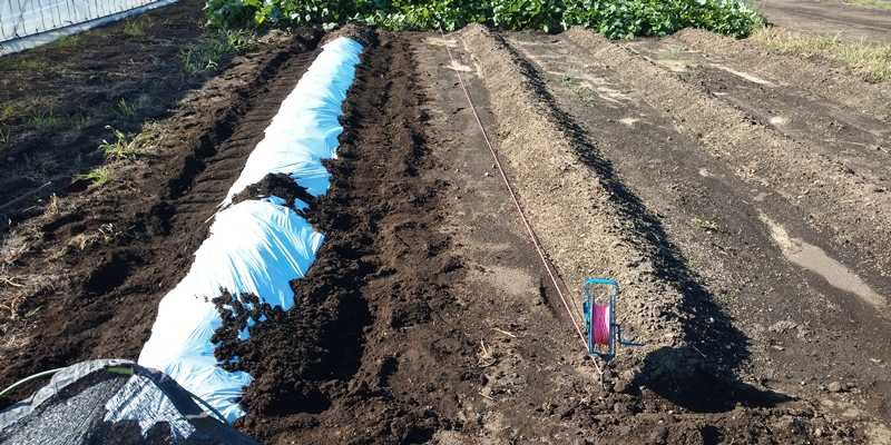 10月9日にPh約5.5の畝に消石灰を入れて三本鍬で攪拌していた。11月9日に、ぼかし肥・アズミン・マグゴールド・もみ殻燻炭・ダイアジノンを入れて最後の土作りをして、9515マルチが張れるように畝作りをした。■もみ殻燻炭から入れた。■ぼかし肥・アズミン・マグゴールド・ダイアジノンを入れた。■三本鍬で攪拌して、9515マルチを張るために80cmの畝立てをした。■300坪の畑で、妻の山形行きの手土産用に、つくね芋と赤ネギを収穫した。ブログランキングに参加してます!1ポチッを是非お願いします!にほんブログ村家庭菜園ランキング
