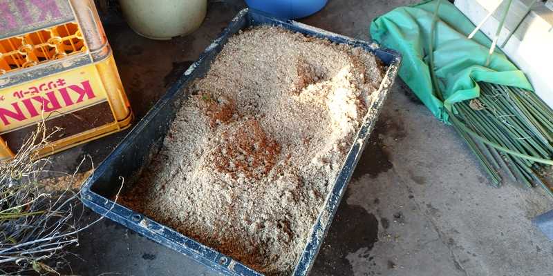 前回は9月12日に、好気性と嫌気性の両方のぼかし肥作りをした。好気性ぼかし肥は、中晩成玉ねぎの畝に使って残り半袋になった。初めての嫌気性ぼかし肥も完成していると思うが、12月初旬のにんにくと超極早生玉ねぎの追肥に使おうと思っている。■70Lのポリバケツで作るので、容量としては60Lが限度か? 前回同様、米糠にもみ殻、油粕・魚粉・骨粉で、コーランネオ少々でEM活性水を約1L使った。■もみ殻を入れる100Lの袋に入れた。■前回同様60L分くらいの量で、来春4月末に使えるか? 嫌気性ぼかし肥はまだ分からない事ばかりw■前回同様、マジックテープに作成日を入れて蓋を閉めて終了。■土佐生姜の貯蔵作業。 昨年と同じ発泡スチロールの箱に、90Lの袋にもみ殻燻炭を入れながら3段に敷き詰めた。■近江生姜はキッチンに取り込んだので、土佐生姜は来年4月までの貯蔵モード。種には半分も要らないので、途中で取り出すつもり。ブログランキングに参加してます!1ポチッを是非お願いします!にほんブログ村家庭菜園ランキング