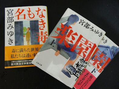 例によって、自炊派の私はBook Offで¥105文庫を探す。ジャンル問わず、活字であればなんでも読む。もちろん、読むとき(買うとき)にはテーマを決める。今月は誰の本を読むか。今月は東野圭吾。大分読んだが、初期の頃の作品は手付かず。それこそ古書の威力は発揮する時。しかし、¥105コーナーに東野圭吾が見当たらない。どうして?このBook Offに限って?別のBook Offに行く。やっぱりない。どうして?多少歩いて30分のところまでゆく。やはりない。どうしたんだ?東野圭吾。先月まであったじゃないか!(もちろん、¥105でない「東野圭吾」は沢山いる)ということで、テーマを替えることにした。かなりの量読んでしまった、宮部みゆき。まだ、読んでいない「楽園」(上下巻)と「名もなき毒」をそれぞれ¥105で買うことにする。これで一週間もつかな?