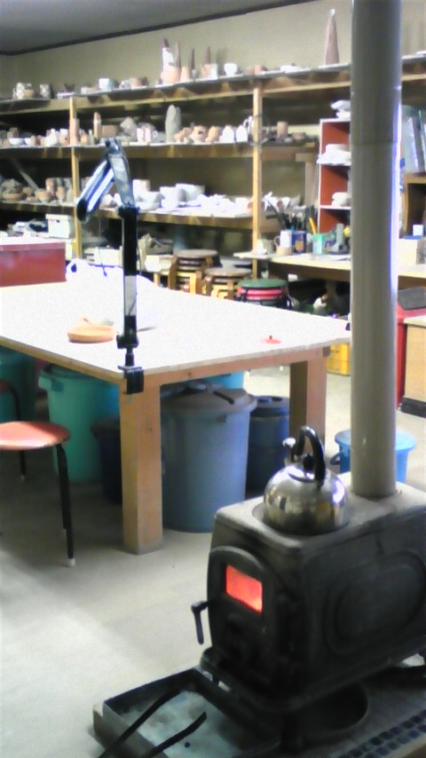 薪ストーブが、なんともいえなくいい雰囲気で、このストーブの薪の灰を釉薬として作品にかけることもあります。