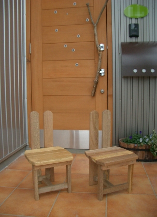先週「どうぞのいす」と言う絵本を買って影響された息子が「僕もどうぞのいすを作りたい」と言い出したこの人は工作とか、何か作るのが好きなのである 数日後、おり良くストーブの薪用として貰った廃材の中に工作に使えそうな木材がたくさん含まれていたので、息子、娘と一緒に「Berry版どうぞのいす」を作った次第である 一緒に。。。と言っても娘は何もしていない横でぼんやりワクワク鼻息荒く楽しそうに見ていただけである息子には一応簡単な作業はさせたやさしい部分のネジ締めや、ペーパー掛け、ニス塗りなどでも、実際にはほとんど『お父さんのやるとこを見ておけ』状態だ モデルになったオリジナルの「どうぞのいす」はウサギが作った物らしく、背もたれが耳の形になっていてかわいいので、それはそのまま真似をしたが僕がデザイン的に気に入ってたもうひとつのポイント、いすのしっぽは安全面を考慮し断腸の思いで省略した座面などもやはり安全面と、廃材の大きさを上手く利用するのとでオリジナルとは違う形状である