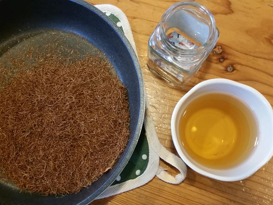 瓶詰め、初の一杯、フライパンでの乾煎りから乾燥、剥いたばかりの元の状態まで遡って写真を載せるけど、