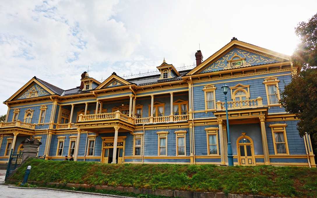 函館山の麓にある坂道「基坂(もとさか)」から見上げると、華麗で美しい洋館がせまってくる。桟互葺の屋根、そしてブルーグレーと黄色の外壁が印象的だ。区公会堂内に入ると、気品ある調度品や内装、照明設備が明治・大正時代にタイムスリップしたようだ。数多くある洋館の中で、際立つ美を放つ「貴婦人」である。 現在の「旧函館区公会堂」は、明治40年の函館大火の後に再建された。町会所、商業会議所事務所として竣工する。木造建造物で、国の重要文化財になっていることから、これまで幾度なく補修されてきた。2021年にリニューアルされた。大広間や会議事務所は、「貸室」として一般に使用できる。 2階の大広間では、舞台ピアノとシャンデリアが目をひく。バルコニーから眺める眺望は、開放感を味わえるスポット。明治・大正時代のハイカラ衣装をレンタルして、記念撮影する観光客もいる。バルコニーから港をよく見ると、スプリット号のほかに、港ふ頭に接岸するダイヤモンドプリンセス号があった。写真1 基坂の上 旧函館区公会堂。写真2 貴婦人のような洋館。写真3 バルコニーは記念撮影スポット。写真4 区公会堂内部の様子。写真5 天井が高い大広間。写真6 バルコニーからクルーズ船を。