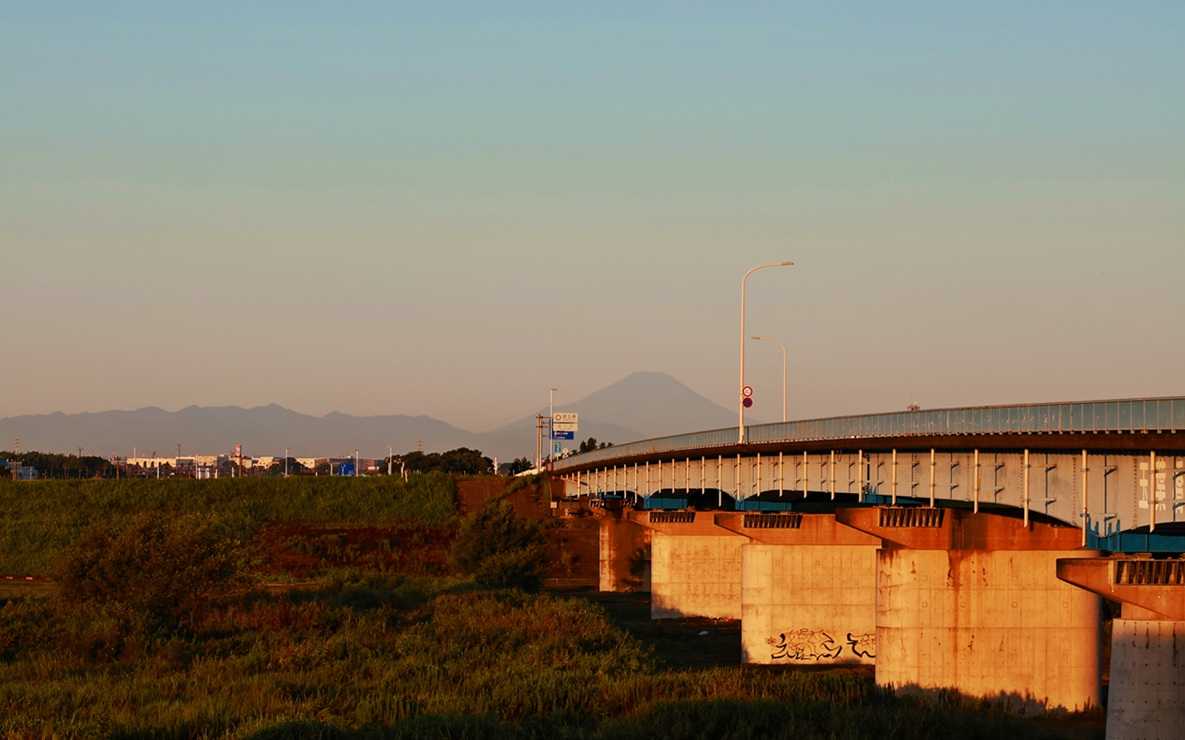 北流山から120キロ以上離れている富士山が夏場に見えるのは稀だ。見えても黒っぽくシルエットとなる。江戸川に架かる玉葉橋は、東西方向に向かっている。そのため、玉葉橋の東西橋詰から富士山と筑波山を眺めることができる。江戸時代から「西の富士 東の筑波」と言われた名山。日本百名山において、一番高いのが富士山(3,777m)、一番低いのが筑波山(877m)。奇しくも下桁に「77」が並ぶ。江戸川を渡って玉葉橋を見るとも二つの百名山が橋上に載っているようだ・・。 2025年の富士山登山の期間が9月10日で終了した。今年から新たな制限を設けたが、昨年並みの人気となったようだ。1か月に8万7千人ほどが登山した。入山料4000円の徴収と、山小屋の宿泊予約のない場合は、14時から翌朝3時まで入山禁止とした。2026年はどのような条件となるのだろうか・・。日平均2000人を目指すのか・・。写真1 玉葉橋と富士山。写真2 玉葉橋と筑波山。写真3 橋上の二つ名山。写真4 富士山と都心のビル群。写真5 江戸川越しの富士山。写真6 江戸川下流を望む。