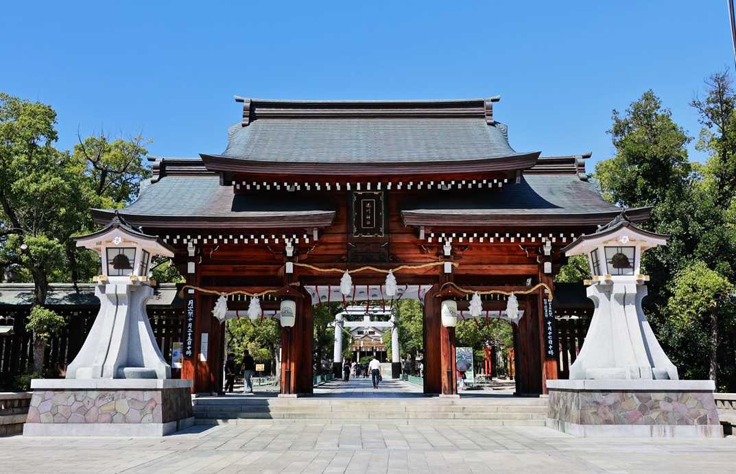 JR神戸駅の北西200ⅿの多門通3丁目に湊川神社がある。祭神は楠木正成。地元では親しみを込めて「楠公(なんこう)さん」と呼ばれている。現在の社殿は、戦火で焼失したが、昭和27年に鉄筋コンクリート造で再建される。菊水の紋をあちこちで見かける。 神社の創建は、明治5年とされる。創建に当たり、当時の薩摩藩、尾張藩、水戸藩らの主導権があったため、明治政府が主導した。それまで社名は、楠公社 南木神社、大楠霊神社などがあったが、地名を付けたものになった。「太平記」では、「湊川の合戦」で、足利高氏・直義の大軍に敗れ、この地で殉節したとされる。 表門に向かって右手に、史跡「楠木正成墓碑」がある。江戸時代半ばまで、地元の人々にひっそりと祀れていた楠公の墓に、注目した人物は徳川光圀公。元禄5年に建設費183両余りの墓碑を建立する。四角台座に亀趺が載り、礎石を担ぐような形式で「亀趺碑」と呼ばれる。「嗚呼忠臣楠子之墓」と刻まれている。かの吉田松陰も座右に掲げていたという。写真1 湊川神社の表門。写真2 湊川神社の社殿。写真3 拝殿の天井画「164点」。写真4 参道の大鳥居他。写真5 史跡「楠木正成墓碑」。写真6 湊川の戦い図と殉節池。
