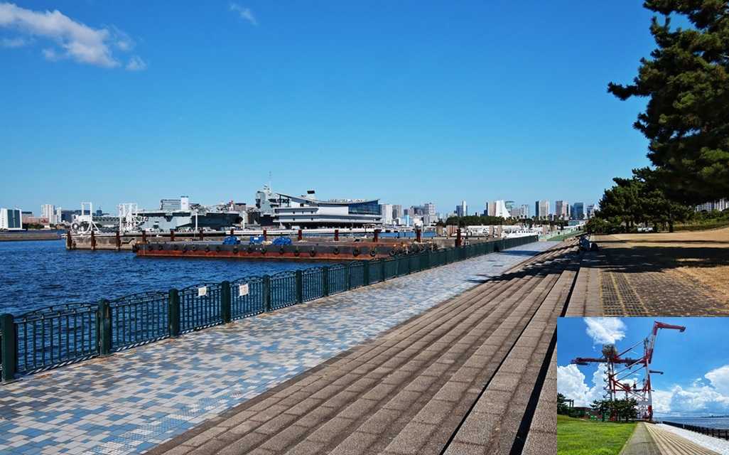 東京国際クルーズターミナルを見渡すことができる「青海(あおみ)南ふ頭公園」。Ⅼ字形をした都立の海上公園の一角にデザインウォールで築かれた展望広場がある。この広場からは東京港を行き来する船や対岸の大井コンテナふ頭、更には羽田空港を発着する航空機を見る事が出来る。 展望広場から東京国際クルーズターミナルに接岸している空母プリンス・オブ・ウェールズの船尾が見える。その甲板上に戦闘ヘリコプター4機ほど載っている。空母が出航する予定日であるが、出港時刻が不明だった。日中、最高気温37度予想なので、10時前に南ふ頭公園を離れた。 青海(あおみ)南ふ頭公園に隣接して青海コンテナバースがあり、ガントリークレーン設置されている。公園内には「青海信号所」が立っている。東京西航路を通る船舶の安全を図る信号機だ。〇は出航可、×は入出禁止、Ⅰは入港可を伝える。防波堤の突端に、「第2信号機」があった。写真1 お台場・青海南ふ頭公園(都立海上公園)。写真2 東京国際クルーズターミナルと空母の船尾と搭載ヘリコプター。写真3 クルーズターミナルに接岸する英空母。写真4 対岸の大井コンテナふ頭と羽田空港。写真5 ふ頭公園展望広場と青海信号所。写真6 ゆりかもめ・東京国際クルーズターミナル駅と記念艦宗谷。