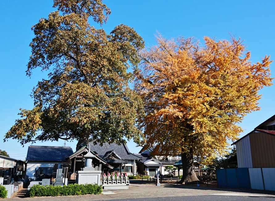 近くのお寺の境内中央に、大きな銀杏(イチョウ)と無患子(ムクロジ)の樹が対で立っている。黄色に色づき、実が落ちる頃、散歩のコースに欠かせない。晴れた日、暖色に包また黄樹を見ると、見る方も温かくなってくる。 大きなイチョウ(雌株)は、沢山の葉と実を付けるので境内の掃除が大変だろと思う。樹高いので、黄葉と実の落ちる時期が異なるので、長期に渡る片付け作業となる。熟した実からは、独特の臭いがするので、保管にも苦労すると思う。銀杏(ギンナン)は、揚たり、蒸して食べると美味しいが、手間がかかる。 ムクロジは、漢字名が無患子。「子が患わ無い」と読めるので、子供の無病息災を願って、昔から神社や寺院に植えられた。現在は街中にも病院、クリニックがある。実や種に薬効があるとされた無患子。果皮にサポニンがあり、石鹸に代用された。硬い種は漢方薬、そして羽根つきの羽根の玉に使用された。写真1 福性寺境内の対の樹。写真2 イチョウとムクロジの樹。写真3 青空に映えるイチョウ。写真4 黄金色のイチョウの葉。写真5 沢山のムクロジの実。写真6 赤い南天の実。