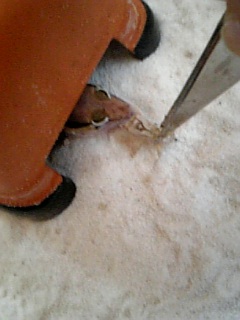 梅雨も明けて毎日アヂィィィポヶ━[Θ´-Д-`Θ]━…猛暑猛暑の毎日(ノ_-;)ハア…すでに夏バテしそうな私デスさてさて前の日記で紹介したニシアフのどんぐりちゃん姿は見せてくれないものの、毎日コオロギを5~6匹食べしっかりウンチョもして元気イッパイですまだまだチビなのですごく臆病見ている時は絶対シェルタ-から出てきません・゚・(。>ω<)・゚・元気なのか?生きているのか?心配になるくらい・・・でも無理矢理シェルタ-から出すのは可哀相なのでいつも給餌の時に元気なのか?健康確認してますこんな感じデス(笑)コオロギをわざとシェルタ-の入り口で『フリフリ』して元気に出てくるのを確認しています(((*「´▽`)=3フゥ♪本当にこうもしないと、姿は見れません(´;ェ;`)ウゥ・・・毎日これで健康確認して『ホッ』としてますこれからも何事もなく、立派に育って欲しいな