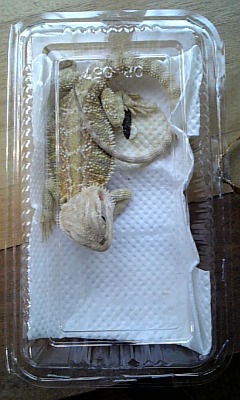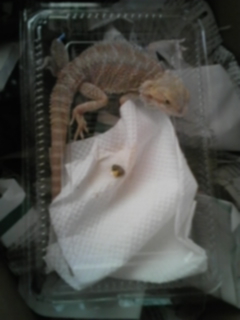 ここ何日か、日中暑い日が続いています(;´▽`A``そんな晴天続きの中我が家に新しい家族をお迎えしました4月19日(土曜日)に乗って我が家へフトアゴヒゲトカゲベビ-クリアネイル♂2008年1月1日生(元旦)Kazumi’s Room様から届きました梱包もしっかりしてあって、感謝感激です本当に有難う御座いました輸送中にウンチョが(゜×゜*)プッ元気に到着してくれて何よりデス箱を開けて、思っていたよりもチビチビなのにビックリ~ヽ(゚Д゚*)ノキョトンと私を見ていて(勘違いw)もう可愛いのなんの(* ̄ii ̄)ブー頭・お顔が脱皮前で真っ白けデス( *^艸^)プププ他の仔達と同じように大切に×大切に可愛がっていきます元気に大きく育ちますように皆様ヨロシクです皆様にお伝えしたい事があります私が初めて飼育した爬虫類でもあるとっても可愛かったフトアゴヒゲトカゲの由也とロ-ソンフトアゴヒゲトカゲのSHINVA。去年の6月頃に、出産の為、預けていたお家で亡くなりました。亡くなって、亡骸も処分された後に知ったので亡くなった正確な日が分かりません。2人が帰ってくる日が待ち遠しくて…早く会いたくてたまらなかった。それなのに。。。気が狂うほど毎日泣いて過ごし爬虫類飼育を辞めようと思った時もありました。爬虫類飼育を続けても、フトアゴはもぉ飼育しないと思っていました。でも気持ちを切り替えて、またフトアゴと一緒に暮らします。由也とSHINVAに対してずっと悲しい気持ちで下を向いていても申し訳ないから。2人の分まで大切に可愛がって、育てていきます。由也とSHINVAの亡くなった事は左のフリ-ペ-ジ(由也・SHINVA)に書いてあります。私にとって2人の死は納得出来ないし受け入れたくない。だから、ココにも今まで書きませんでした。でも今回、もう一度フトアゴ飼育を始める事でケジメをつける為に、書きました。