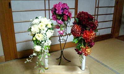 クリスマスも過ぎちゃいましたねお陰さまで財布の中は真冬デスチビ助♪へのプレはまた後でUPします(^ー^* )フフ♪結婚式の写真をUPしようと思いますじっくりとは見ないで下さいね(゜×゜*)プッ視力が低下する恐れがありますので1枚目義姉のお友達にオ-ダ-して作ってもらったブ-ケです かなりワガママを言って作ってもらいました(゜ー゜;Aアセアセ写真では分かりづらいんですが、金のラメクリスタルリボンりんごなどを使って可愛くかっこよく綺麗に仕上げてもらいました実物見て鳥肌が立つくらい素晴らしいブ-ケさん達でした2枚目これは生花で作ってくれたリングピロ-です(●´艸`)プキュゥ♪こちらは義姉のお友達からのプレゼントお花の中のクリスタルに指輪を掛けるようになっていてメサメサ可愛かったでした3枚目挙式中デスそうですこの誓いの場でパパがセリフを・・・マチガエタ“誓います”と言わないといけないのに・・・パパは大きな声で~ハッキリと~“契約します”と言っちゃいました(* >ω<)=3ブブッッ私も牧師さんもコレには思わず噴き出しました[爆笑]ョ>з<o)ブッ4枚目外に出た時に家族3人でチビ助♪もチョウネクタイを付けてオシャレさん(*´ェ`*)ポッ 5枚目ケ-キ入党デスεεεεεヾ(*´ー`)ノ夫婦で共同作業(笑)6枚目甥っ子&姪っ子からの花束贈呈人前になんか出れなかった子が・・・こんなにしっかりなっちゃって感動7枚目最後のお見送り左から姑・舅・パパ・私・義姉・母・父デス(*ノωノ)私のオカンは終始泣きまくっていて目がウサギさんになってました(◆▽◆ゞ)こんな感じの結婚式でした(どんな感じだ(笑))来てくださった方々に感謝すると共に、、、この日を忘れず、いつまでも一緒に居られるように・・・日々過ごしていきたいと思います