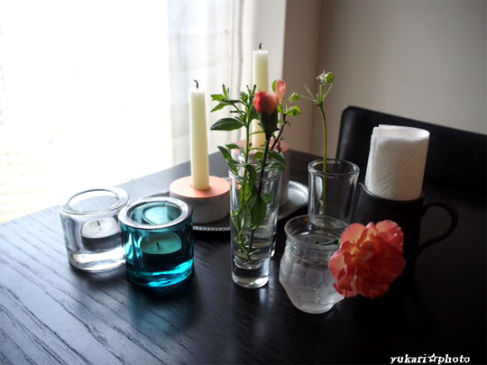 久しぶりに明日は「らくらく簡単お料理教室」をします。去年からブログを見て申し込んでくださった方が来られます。私の体調やら諸事情で今になってしまいました。明日は久々なのでちょっとどきどきですが、私らしくテーブルコーデしてお料理したいと思います。 昨日はお花の買い出しに。ZARA HOMEで買った小さなグラス6個にいろんな色のガーベラを挿して。一つだけアイビーにしました。 jarsのピッチャーに入れたグリーンと花は小花が落ちるのでダイニングテーブルにはおかず、artekのスツールの上に飾りました。 お客様が使われるトイレの中にも好きな花を飾って。 今日、PC作業をしているとちらりとのぞくグリーンについ目がいきます。やはりグリーンのある暮らしはいいですね^^ リビングに飾っています。 今日はあいにくの雨なのでいい写真は撮れませんでしたが、雰囲気だけ。。 可愛いフォルムとアボガドカラーに惹かれて。 artekスツールの横にartekのポスターを飾りたいな。。 こんな風に並べられたら。。グレーは廃盤になったのかな。 テーブルコーディネートも決まり、一部このままにして明日に備えます。 HAYのキャンドルホルダー、今はセット売りのみですね。トライアングルは持っているのでスクエアを買い足したいけれど。個別販売してほしいな。 キャンドルホルダーにはこちらのLEDキャンドルを立てています。 ※お料理教室は「お仕事」というカテゴリーにしていますが、お仕事としては今のところしておりません。希望があればさせていただくという程度です。ご了承ください。 + + + コラムのお知らせです。 今回はブログでも少し紹介した100yenshopのガラスキャニスターについて書いています。[おしゃれ100均「meets」雑貨の収納術!ガラスキャニスターの使い方]https://latte.la/column/65344158 よかったらこちらも覗いてみてくださいね<m(__)m> 参考になりましたらうれしいです。 ◆インスタグラムのIDは【yukarirurun】です。 ***にほんブログ村にほんブログ村にほんブログ村***☆いつもたくさんのご訪問ありがとうございます☆3つのカテゴリーのランキングに参加しています。よろしかったらどれか一つに応援クリックお願いします^^