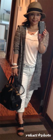 今日も36度超えの蒸し暑いお天気でした。どんどん虫が繁殖しそうで怖いです(>_<) インスタで知った言葉で「しまパト」。しまむらにぶらりと行ってチェックしてくることのようです。 私も時々チェックしに行くから、「しまパト」してるんですよね(^^)vお値段以上のものを見つけた時の嬉しさったら半端ありません・笑。 そこで今日は先日しまむらで買ったグレーのロングパーカーカーディガンを羽織っていきました。これを買った時にオールホワイトコーデの上に着たいなって思ったんです。 tops/MURUAcardigan/しまむらbotoms/アンジェ(インテリア雑貨)belt/H&Mbag/Marc by Marc Jacobsshose/Calzanorhat/近所のカジュアルショップwatch/NIXSONbracelet/Saskia Diez この時、暑かったのでパンツをロールアップしたんですが、改めて写真で見るとどうもすっきりしない。 そこで行く前ぎりぎりになって、ロールアップをやめました。 で、誰もいないエスカレーターでこっそり。やっぱりこの方がすっきりして見える。ただブラウンジングができてなくて、お腹ぽっこり(>_<) せっかくしまむらのカーディガンは思った以上に肌触りも良く、厚すぎず、着やすいのに、ちゃんと着こなせてないのが反省点です・汗。 モデルさんのようにスタイルよければ、もっとかっこよく履けるのに^^; 手元を明るく見せてくれるコンビ。 このリングもシンプルでいてかっこいい♪ カルザノールのサンダルもずいぶん安くなってます。 服が白でベルトがシルバーだったので、アクセサリーも白とシルバーで。リングはもう遠い昔に買ったのでどこのものかも覚えていません(^^ゞプチプラだけどお気に入りです。 お昼は久しぶりに「HUB」へ。若い女性とのデートだったのでカジュアルで気楽なお店にしました。ライムウォーターがさっぱりしていて、暑い日にぴったりでした(^^)v 最後まで読んでいただきありがとうございました<m(__)m> ☆インスタグラムのIDは【yukarirurun】です。 ☆夢香里ROOM☆も随時更新しています。よろしかったら覗いてみてくださいね。*** にほんブログ村 にほんブログ村にほんブログ村***☆いつもご訪問ありがとうございます☆3つのカテゴリーに参加しています。よろしければどれか一つをクリックよろしくお願いします。