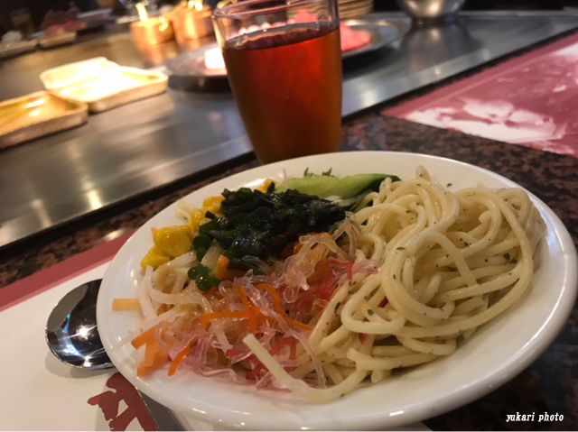 お肉を食べている間にチャーハンも鉄板で作ってくれて、お茶碗に軽く一膳食べました。
