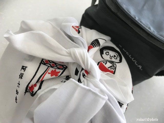 母が目を引くかもと可愛いこけしの手ぬぐいに包んで行きました。
