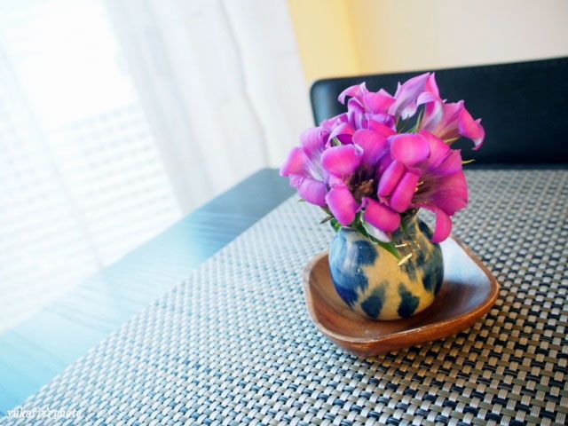 今日ダイニングテーブルの上に少しだけりんどうの花を飾りました。