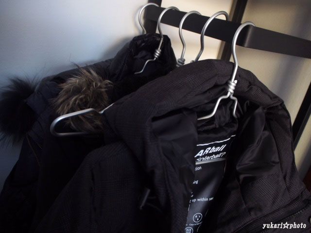 共有のコートハンガーはじょじょに家族のコートでいっぱいになってきました。。。