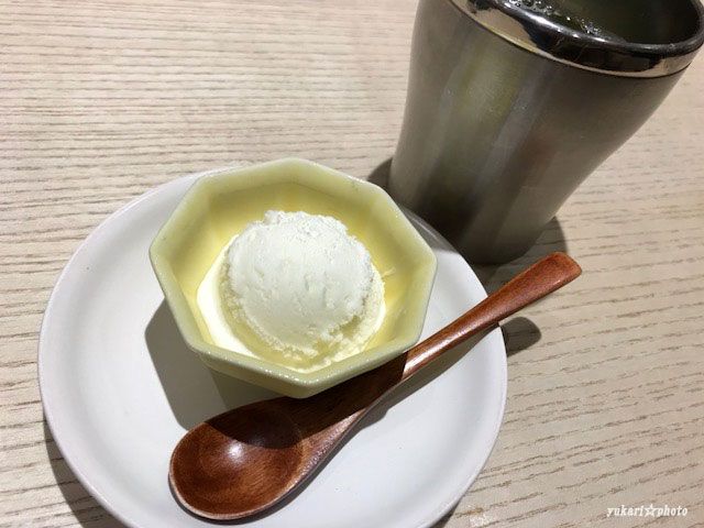 お茶も冷茶と温茶で数種類あり、専用のステンレスコップで自由に摂りに行くことができます。